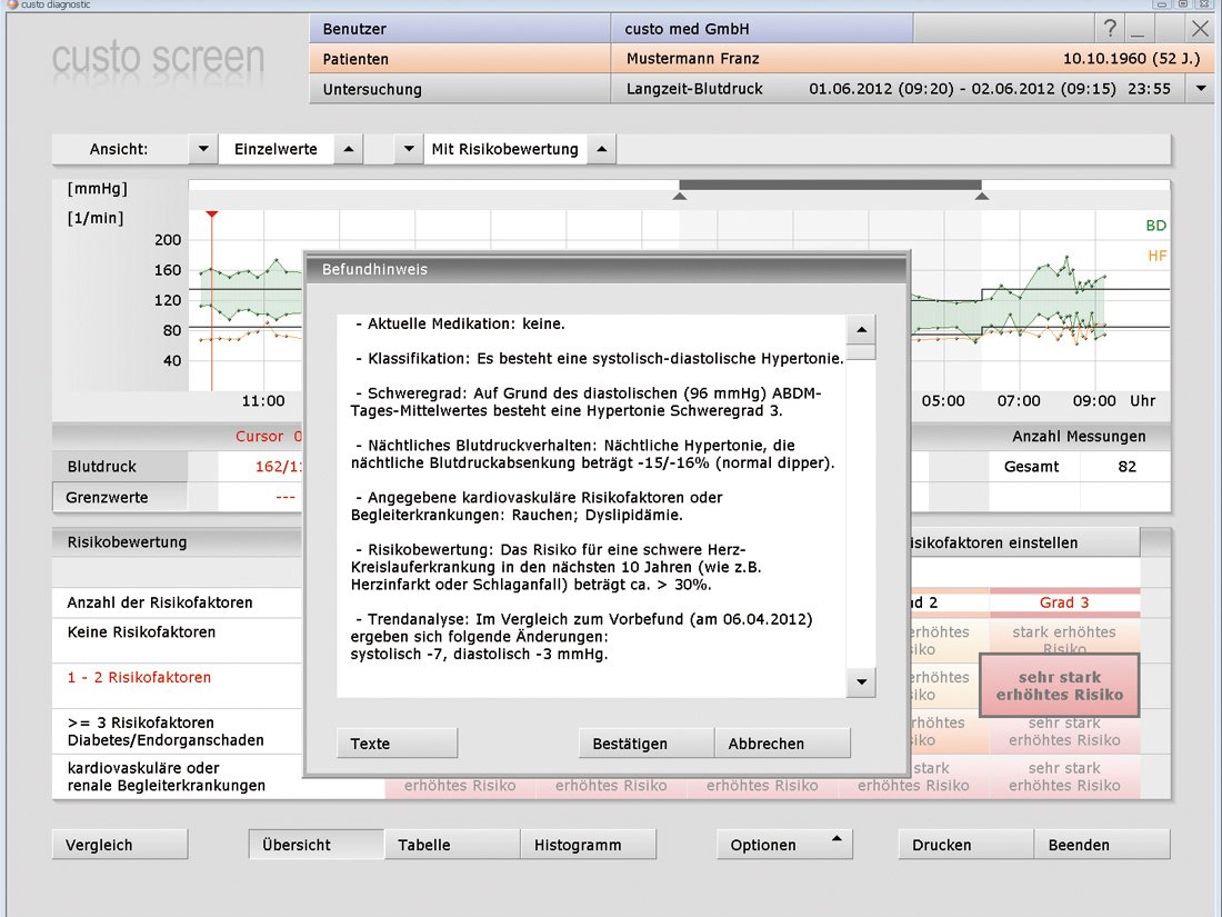 Bu ek modül kardiyovasküler risk faktörleri ile kan basıncı şiddetini kombine eder ve bu parametrelere göre hastanın bireysel riskini belirler. Kan basıncı şiddeti ve risk faktörlerinin sınıflandırılma tanımları Alman Hipertansiyon Derneğinin (DHL) güncel kılavuzlarına uygundur.