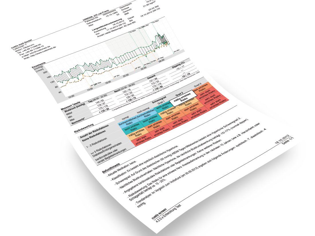Otomatik öneride, hipertansiyonun şiddeti ve sınıflandırılması, geceleri kan basıncı davranışı ve risk faktörleri belirtilir. Dahası, önümüzdeki 10 yıl içinde ağır kardiyovasküler hastalık için yüzde risk görüntülenir. Bu öneri EPR sistemi üzerinden otomatik alınabilir.